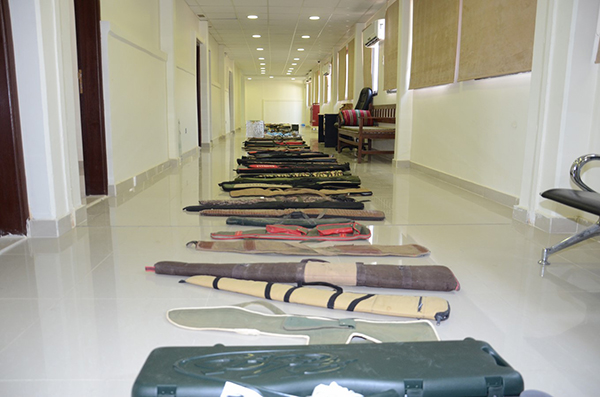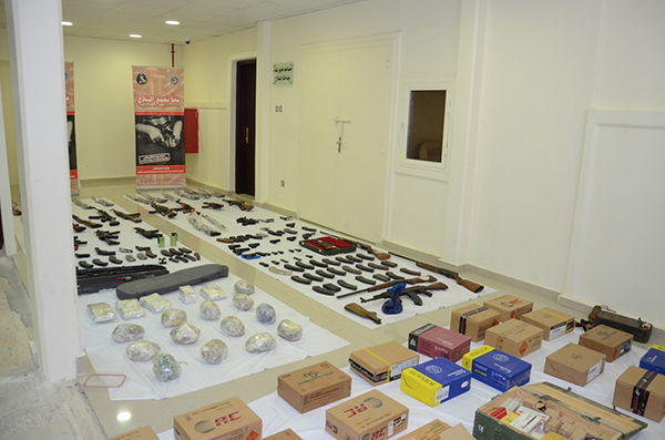 في إطار الجهود المتواصلة لوزارة الداخلية لاستكمال الحملة الوطنية لجمع الأسلحة والذخائر والمفرقعات غير المرخصة، بإشراف وكيل وزارة الداخلية المساعد لشئون الأمن الجنائي بالإنابة اللواء/ محمود الطباخ، ومدير عام الإدارة العامة لمباحث السلاح اللواء/ فراج الزعبي.. تمكنت الإدارة العامة لمباحث السلاح من ضبط أربعة مواطنين بحوزتهم أسلحة وذخائر غير مرخصة تقدر بـ 19 شوزن ومسدس شوزن، و9 كلاشينكوف، و2 ذاتية، وبندقية، و 5 رشاشات (MP5)، و17 مسدس، وقنبلتين، و29 صندوق طلقات شوزن بها ما يقارب 15 ألف طلقة، 95 مخزن أسلحة متنوعة.