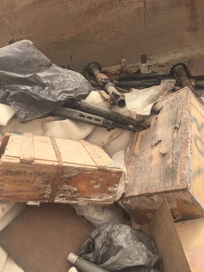 وقال مصدر امني انه ورد بلاغ من عمال البلدية اثناء رفعهم للقمامة عن وجود أسلحة وذخائر ( آر بي جي ، سلاح ذاتية ، وذخائرهم ) وكلها من الاسلحة القديمة منذ الغزو بحاوية للقمامة بجانب مجمع اجيان التجاري الكائن في منطقة الصليبيخات .