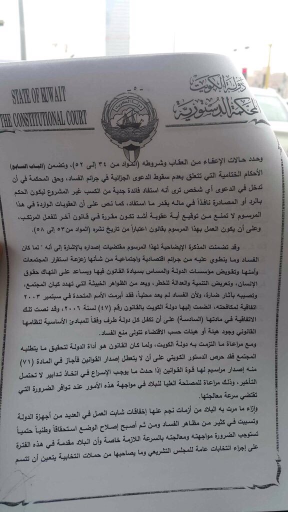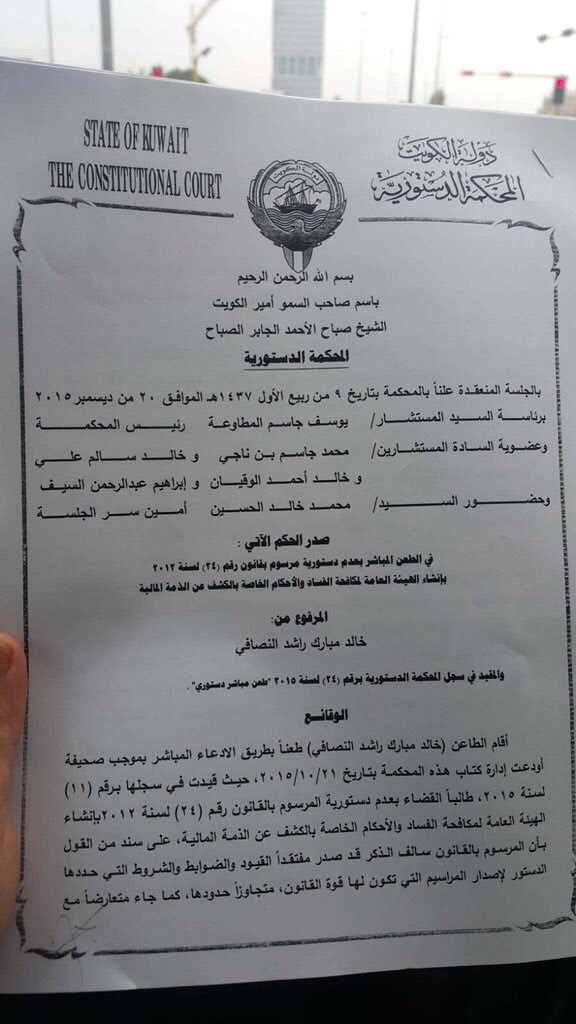 كويت نيوز : الغاء هيئة مكافحة الفساد من قبل المحكمة الدستورية لانتفاء حالة الضرورة