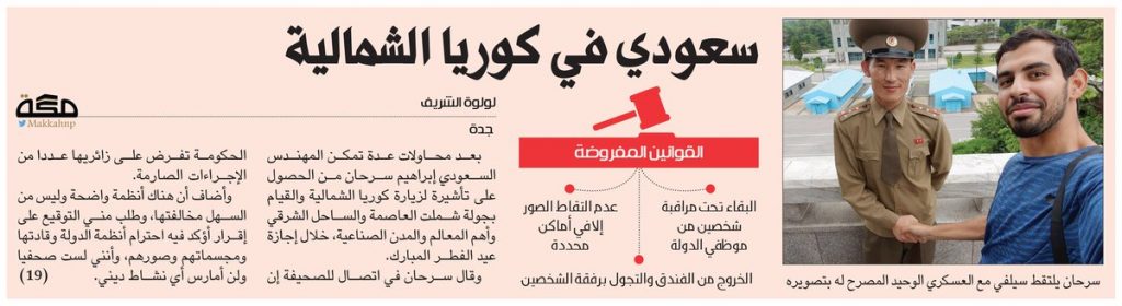 كويت نيوز: قد يرغب الكثير في السفر والسياحة و اكتشاف الدول و لكن ان تسافر لكوريا الشمالية فهذا بحد ذاته مغامرة و مخاطرة و لكن المهندس السعودي إبراهيم سرحان قرر ان يخوض هذه المغامرة .
