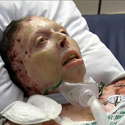 وقد أسفر الحريق المبرح عن إحراق المرأة، وهي أم لطفلتين، وصنف من الدرجة الرابعة أو الخامسة، بحيث غطى 80% من جسمها، وكلفها أصبعين وكلتا أذنيها اللتين ذابتا في النار.