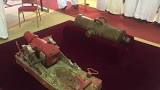 ويلفت الأنظار بالمعرض الخاص بالأسلحة، السيوف الإسلامية والتي يعود تاريخها إلى 200 سنة، ومنها سيف السلطان تيبو الملقب بقطاع الرؤوس، وأيضا البنادق “البلاك باودر” وهي صناعة مغربية، واستخدمت في فتوحات العديد من المدن السعودية، كما يشمل المعرض على “المسدسات” من عام 1942 ، وعام 1750، فضلا عن مسدسات خاصة بالأمير سلطان بن عبدالعزيز، ويوجد أيضا أكبر مسدس وأصغر مسدس، وبنادق خاصة بالملك عبدالعزيز، والتي تصل قيمتها إلى 37 ألفا، وأيضا المدفع العثماني الذي كان يحمي الكعبة وتم استخراجه من تحت برج الساعة عام 1950.