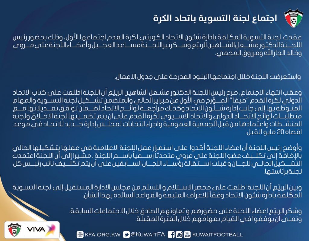 جاءت تفاصيل أول اجتماع للجنة التسوية في اتحاد الكرة، كما في الصورة المرفقة التي نشرها اتحاد كرة القدم.