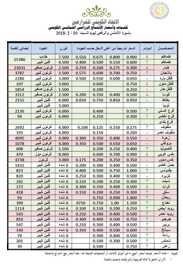 أسعار الخضراوات والفواكه الكويتية اليوم