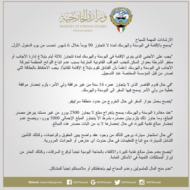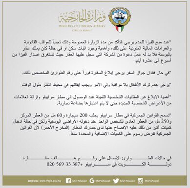 أصدرت وزارة الخارجية إرشادات خاصة للمواطنين الراغبين في السفر الى البوسنة والهرسك، كما في الصور المرفقة.