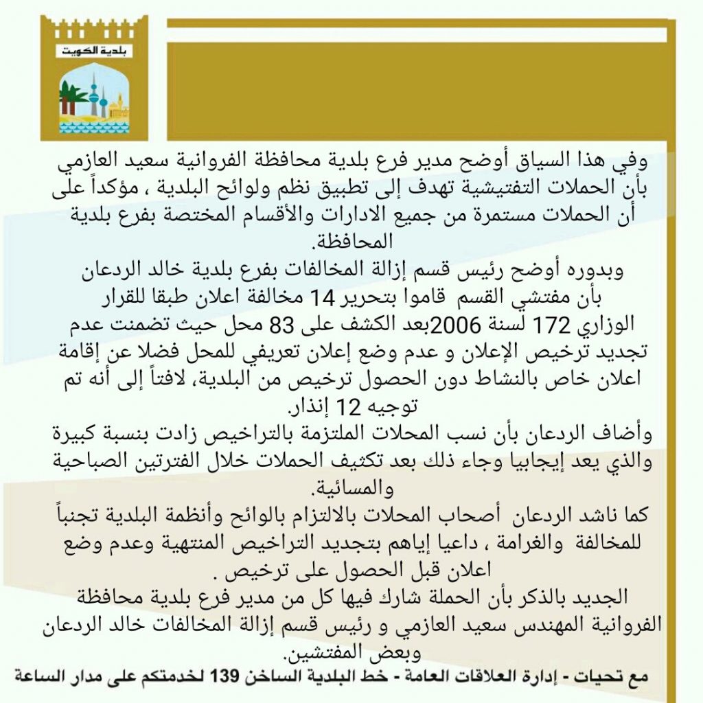 تحرير 14 مخالفة اعلان وتوجيه 12 انذار بـ #الضجيج
