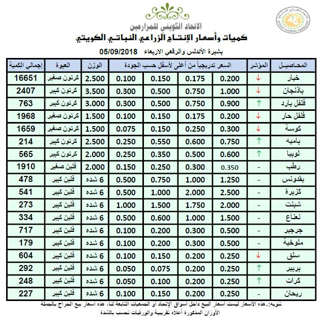 أسعار الخضراوات والفواكه بـ #الكويت .. اليوم