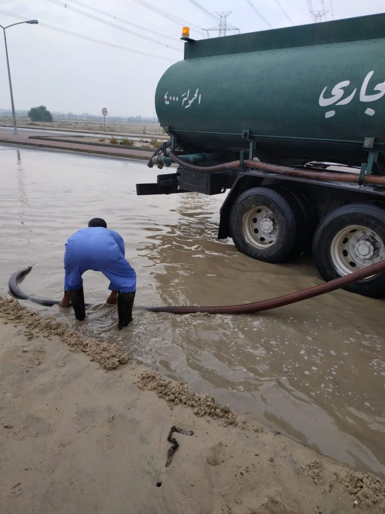 بلدية الأحمدي تسحب مياه الأمطار من جسر الأحمدي الفحيحيل.. الآن