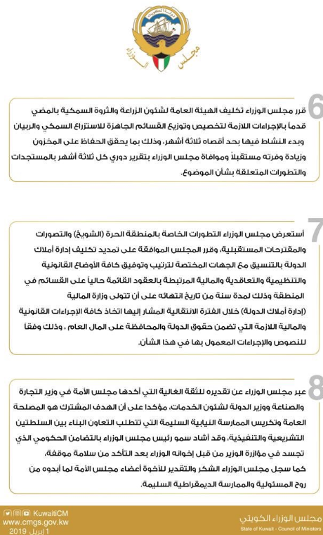 مجلس الوزراء : تكليف هيئة الزراعة بتوزيع قسائم الاستزراع السمكي والروبيان