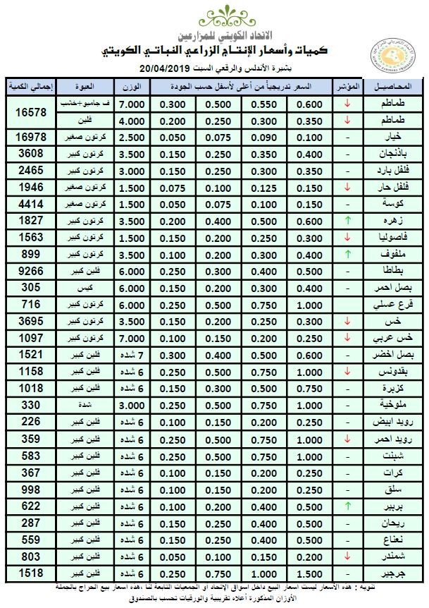 أسعار الخضراوات والفواكه الكويتية اليوم