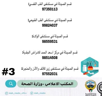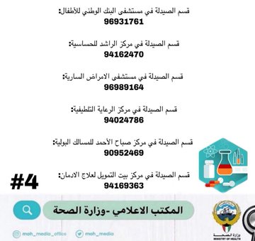 أعلنت وزارة الصحة تدشين خدمة توصيل الادوية للمواطنين بالتعاون مع الإدارة العامة للإطفاء ابتداء من يوم غد الأحد وذلك حفاظا على المرضى وعلى سلامتهم ، داعية إلى ارسال البيانات والرقم المدني ورقم الملف والعنوان على رقم الواتس أب الخاص بك فقط.