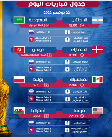 جدول مباريات اليوم في نهائيات #كأس_العالم 2022