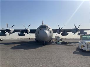 وقال المعراج إن الطائرة تحمل 10 أطنان من المواد الغذائية والأجهزة والمستلزمات الطبية من الكويت لأهالي غزة.