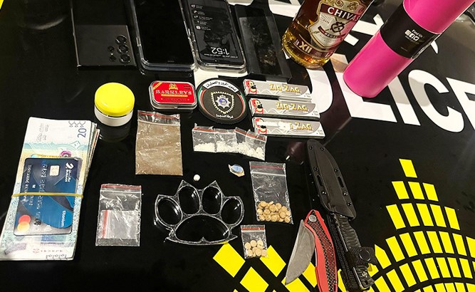 ومضى المصدر بالقول: بمجرد تشغيل الفلاشر الأمني لمركبة المتهم وهي رباعية سوداء فوجئوا بأن السرعة تحولت إلى ما يقارب الـ 150 كم، وعليه تم طلب إسناد وإجبار قائد السيارة على التوقف، وتبين أنه في حالة غير طبيعية، وعليه جرى إخضاع المركبة للتفتيش والعثور بداخلها على مطواة وسكين حاد ورنق بوكس وكيس به شبو و3 أكياس صغيرة بها هيروين ونحو 25 حبة كبتاغون، إلى جانب مبلغ مالي وورق لف، كما عثر بحوزة المتهم على زجاجة بها سائل شيشة إلكترونية بنكهة الحشيش.
