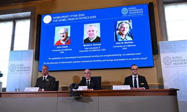 أعلنت الأكاديمية الملكية السويدية منح جائزة نوبل في الفيزياء لعام 2025 إلى جون كلارك (John Clarke)، ميشيل هـ. ديفوريه (Michel H. Devoret)، وجون م. مارتينيس (John M. Martinis)، وذلك لاكتشافهم نفق ميكانيكا الكم العياني وتكميم الطاقة في دائرة كهربائية وهذا العمل يُعد إنجازًا أساسيًا في مجال الفيزياء الكمومية، وله تطبيقات مهمة محتملة في تطوير الحوسبة الكمومية.