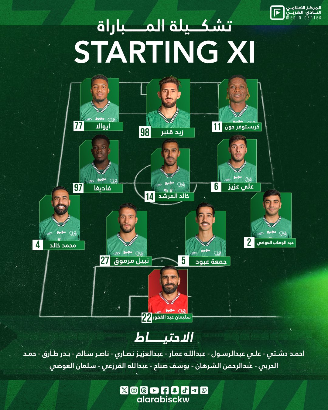 أُعلن اليوم عن التشكيلة الرسمية لمباراة القمة التي تجمع فريقي العربي والقادسية، ضمن منافسات الجولة التاسعة من دوري زين الممتاز لكرة القدم.وتحظى المواجهة بأهمية كبيرة نظرًا لقيمتها الجماهيرية والتنافسية، في ظل سعي الفريقين لتحقيق نتيجة إيجابية وتعزيز موقعهما في جدول الترتيب.