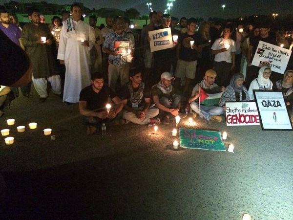 كويت نيوز: أقيم مساء الامس اعتصاما سلمياً صامتا لمناصرة الشعب الفلسطيني بعنوان ‘كويتيون من أجل غزة’ بمشاركة مجموعة من المواطنين والحقوقيين والقوائم الطلابية المتضمانين مع الشعب الفلسطيني أمام السفارة الأمريكية في منطقة بيان وتنديدا بالعدوان الصهيوني على قطاع غزة واستهداف الاطفال والنساء والقصف المستمر على القطاع الذي أسفر عن سقوط مئات الشهداء والجرحى في اعنف عملية تقوم بها اسرائيل تجاه الاراضي الفلسطينية، والذي تداعت له قوى سياسية وحركات شبابية.