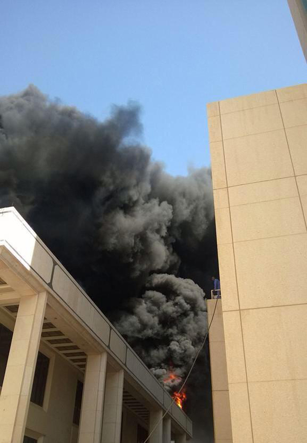 تناقل مغردون عبر مواقع التواصل الاجتماعي، صوراً تظهر اندلاع حريق بعد ظهر اليوم، وتصاعد كثيف للدخان، بمبنى وزارة التعليم العالي بشارع المعذر في العاصمة السعودية الرياض.