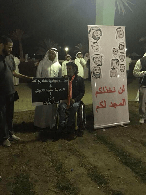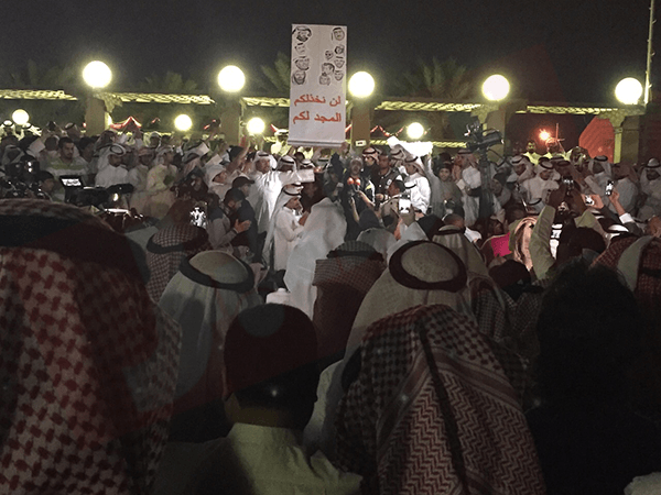 وأكّد النائب السابق فلاح الصواغ على ضرورة “إكمال الاعتصام وأن يكون سلميًا، وعلينا بحفظ مطالبنا وإخراج مسلم البراك ورفاقه، ونقول للفساد كفى وعلينا أن نطالب بحقنا وإلا ستنتهي الكويت.”